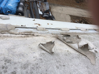 Applying metal bar to the front of the RV roof, on top of the rubber