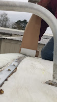 4. Position tape over the center of the bar and remove the backing paper. Apply the tape over the marked areas, trying to keep over the center of the bar. When you get to the end of the roof, cut off the excess tape and save it for future repairs you may have.
